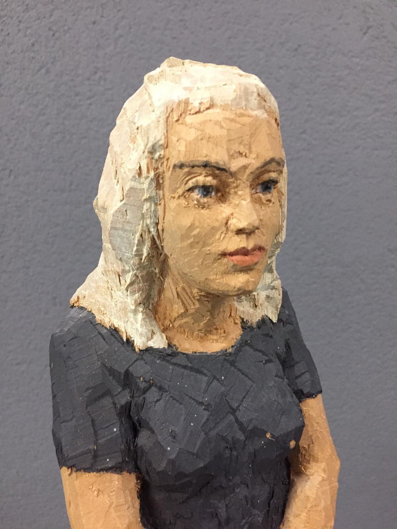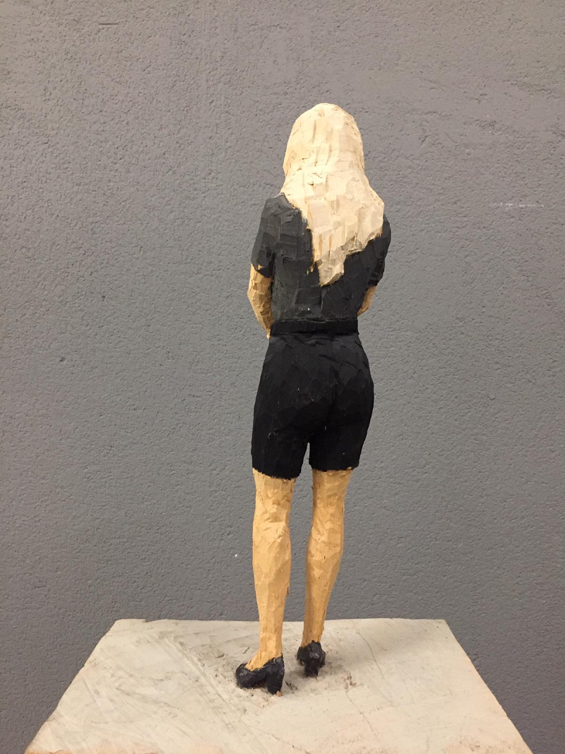 Stephan Balkenhol 1957 Fritzlar, Germany Figuren saule Frau, 2008 wood sculpture 48 x 11.5 x 10 cm Base 120 x 33.7 x 24.5 cm