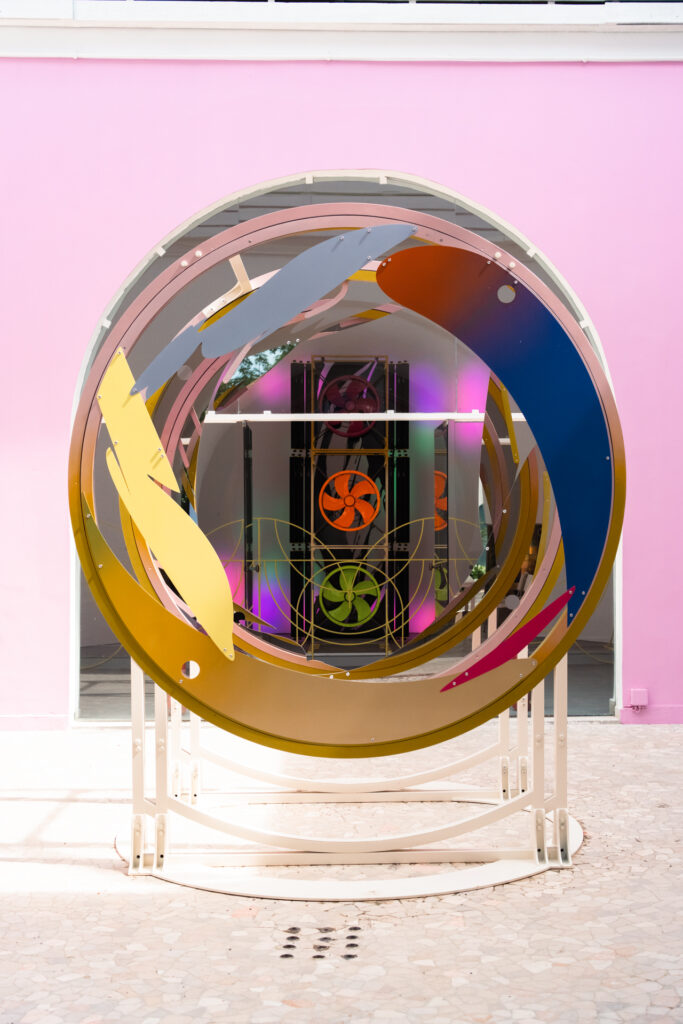 Kapwani Kiwanga is a multi-disciplinary artist concerned with forms of power: their suppressed histories and quotidian effects. The artist transforms the Canada Pavilion by way of a site- specific sculptural installation on the building’s interior and exterior, turning it into a large-scale tableau. Shapes shift, dissolving distinctions between inside and outside. As one moves through the coil-like architecture, it unfolds, multiplying perspectives.