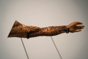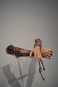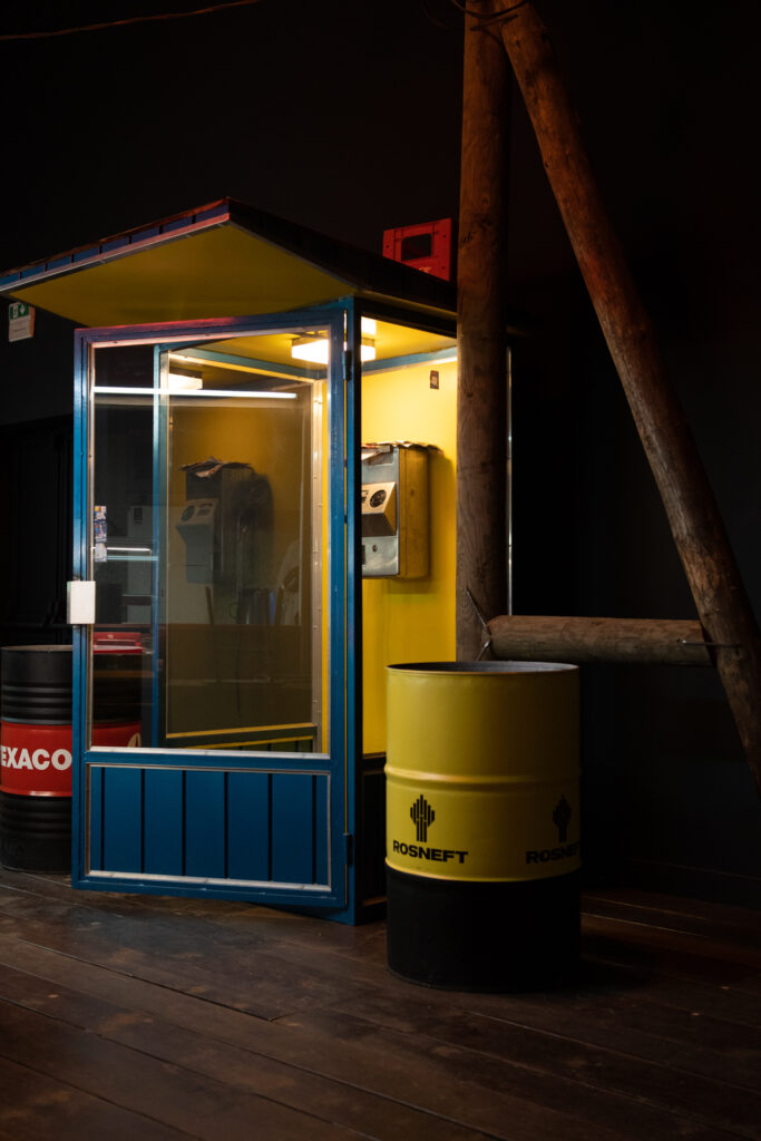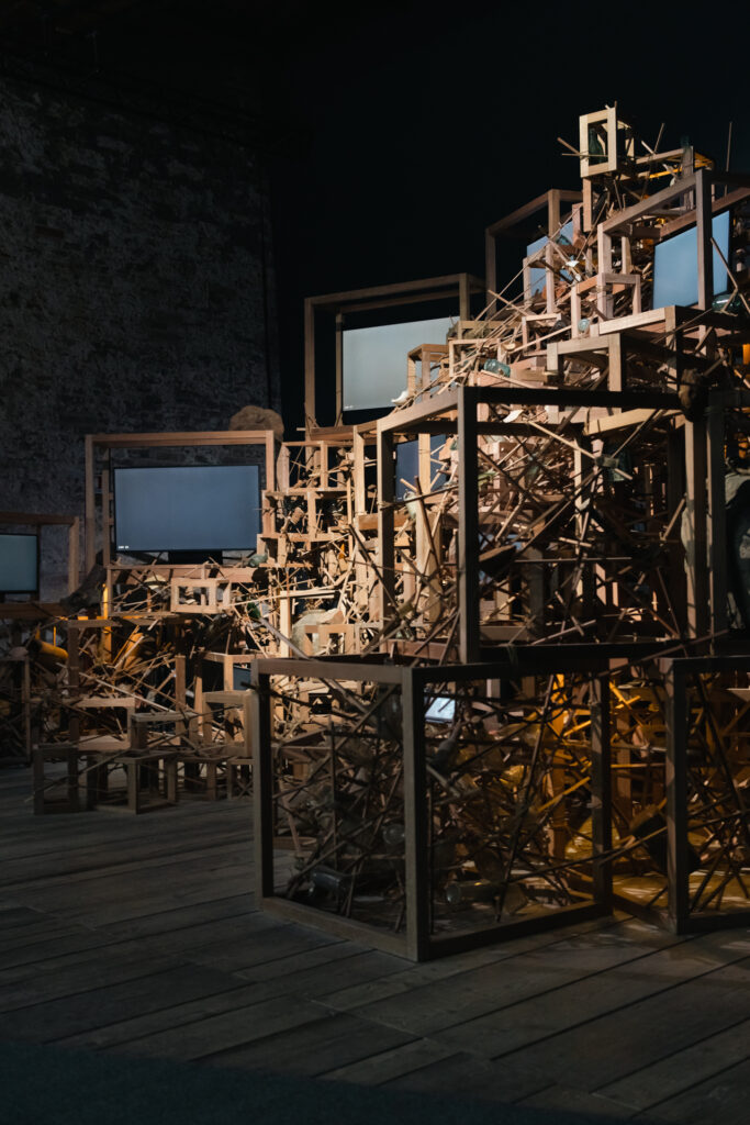 The title of the exhibition, Exposition coloniale, recalls the consequences of the colonial era. This historical context sets the stage for Denić’s exploration of the contemporary ramifications of colonialism, and the ongoing impact of the division and subjugation of peoples and cultures. In today’s world, the themes of usurpation, division, and control continue to be pertinent, not only in the realm of politics and finance but also in the sphere of basic human values and principles. Through his significant and awarded artistic experience in theatre, Denić used his skills to delve into complex and pressing issues. Intricate structures and spatial conglomerates are imbued with the anxieties of the society in which they exist. They act as social memorabilia, capturing the essence of human sojourn and reflecting the lost sensibility and intimacy of our interactions within them. By employing symbolic inversion within the exhibition, he challenges viewers, placing them in a setup to reexamine their understanding of power dynamics, consumerism, and multiplied bitter realities in the current state of affairs; finding himself personally, as a foreigner, as an artist who is professionally permanently displaced to Germany and German-speaking areas, where he has been working over the past decades.