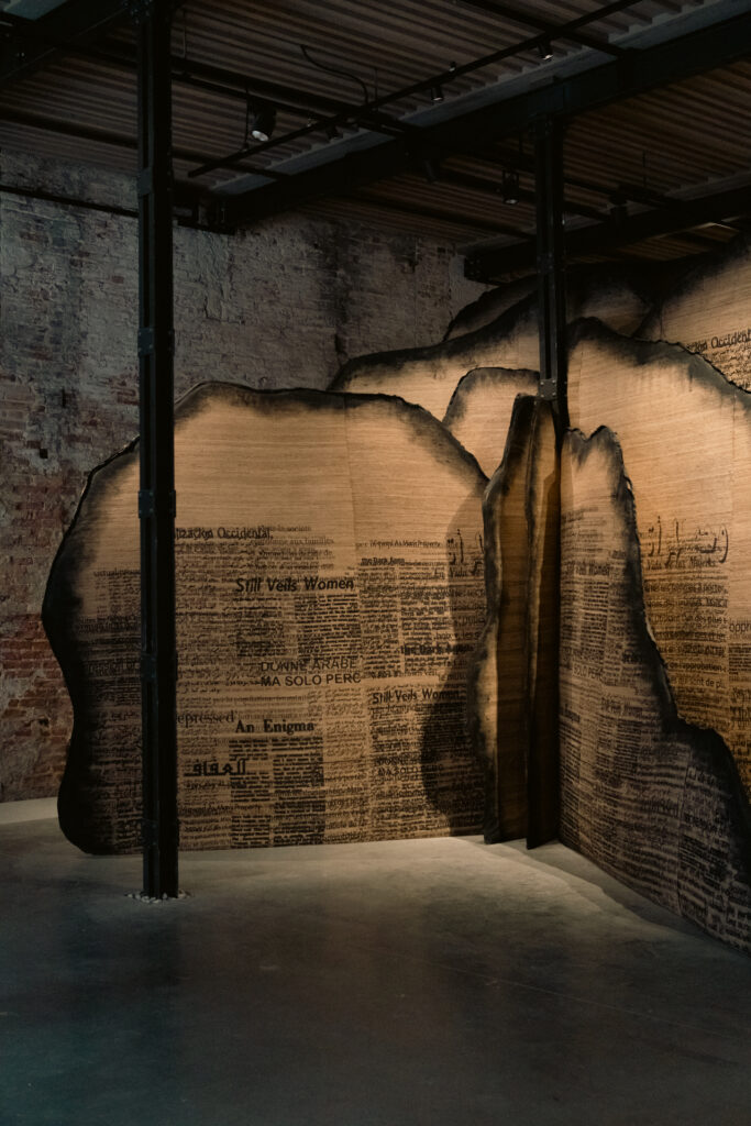 Manal AlDowayan’s installation, Shifting Sands: A Battle Song, is inspired by the evolving role of women in Saudi Arabia’s public sphere and their ongoing journey to assert their place and to reshape the narratives that have historically defined them.