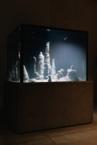 Pierre Huyghe transforms Punta della Dogana into a dynamic, sensitive milieu perpetually evolving. The exhibition is a transitory state inhabited by human and non-human creatures and becomes the site of formation of subjectivities that are constantly learning, changing, and hybridizing. Their memories are expanding with information captured from events, both perceptible and imperceptible, that permeate the exhibition.