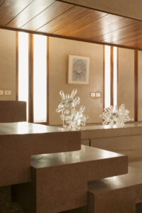 Negozio Olivetti is hosting the temporary exhibition “Tony Cragg. Le forme del vetro” curated by Cristina Beltrami and Jean Blanchaert, produced in collaboration with Berengo Studio. On the occasion of the exhibition, part of the Olivetti typewriters and calculating machines have given space to glass works by Tony Cragg.